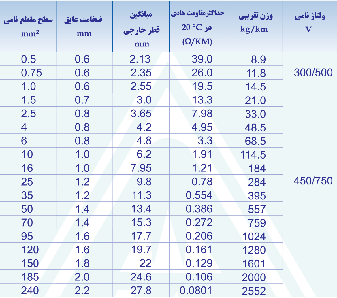 - واحد اندازهگیری سطح مقطع میلیمتر مربع میباشد.